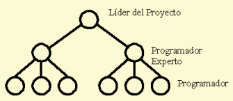 • Del líder del proyecto dependen una serie de programadores expertos que gestionan cada uno un grupo de programadores que desarrollarán subtareas.