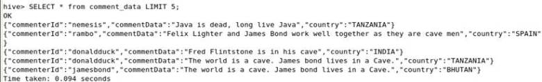 hive>SELECT * from comment_data LIMIT 5;