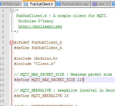 Que es la propiedad que la librería utiliza para definir el tamaño de las cadenas de caracteres que contendrán el mensaje MQTT. En teoría, modificando el tamaño de este #define, a un valor más adecuado con el tamaño de nuestros mensajes MQTT, ya tendríamos configurada la librería para nuestras necesidades: