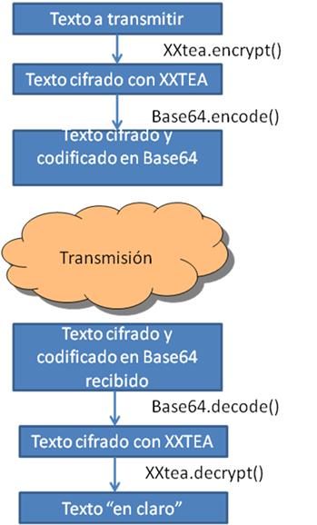 XXTEA tras cifrar la información, nos devuelve un array de datos binarios que pueden corromperse al ser transformados por los APIs de comunicación o por nosotros mismos si los convertimos directamente a Strings.