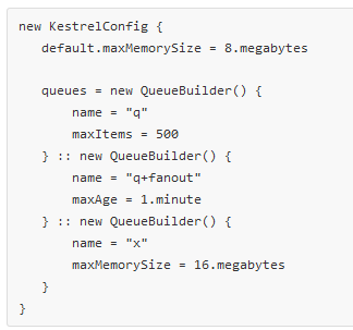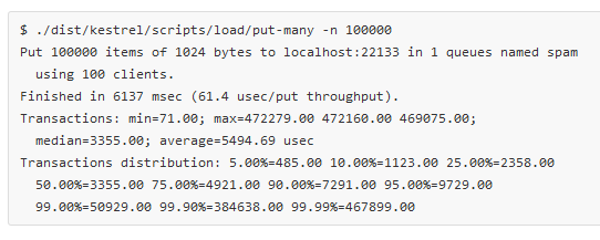 Kestrel es una cola de mensajería distribuida que corre en la JVM Java.