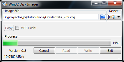 Y utilizamos un software gratuito que permita escribir la imagen descargada anteriormente sobre la tarjeta. Uno que da buen resultados testeado en Windows7: