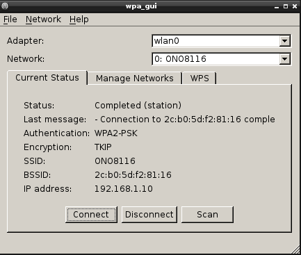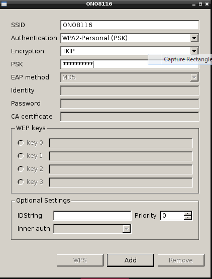 Introducimos la clave wifi en el campo PSK y pulsamos “add”. La red y la ip apareceran configuradas en la pantalla principal.