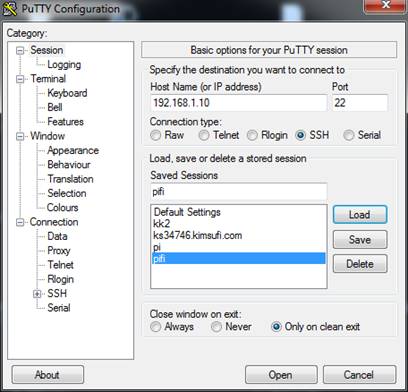 Si tenemos el servicio ssh activado (en raspi-config) acceder desde un PC mediante ssh con putty es tan sencillo como escribir la IP: