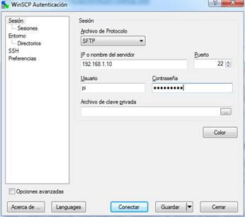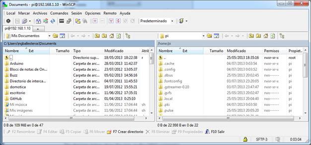 Para transferir ficheros entre nuestro PC y el Pi valdrá cualquier aplicación que haga transferencias sftp. La aplicación winscp es gratuita y funciona correctamente http://winscp.net/download/winscp515setup.exe