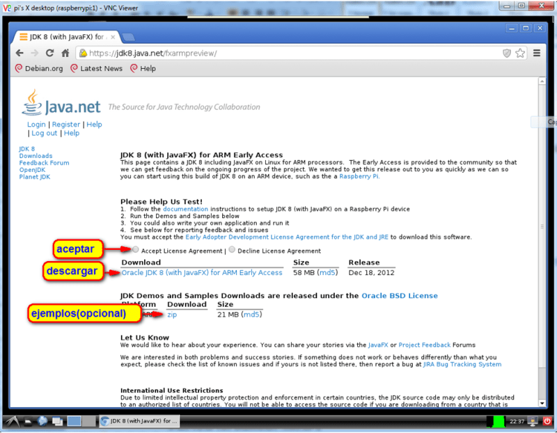 Llegó el momento de descargar la distribucion de Java8 para procesador ARM desde http://jdk8.java.net/fxarmpreview