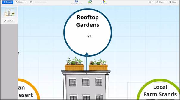 Prezi no usa diapositivas, sino un gran lienzo virtual donde integrar imágenes, textos y videos, de modo que vamos sobrevolando la información con zooms, giros y desplazamientos obteniendo una presentación muy dinámica.