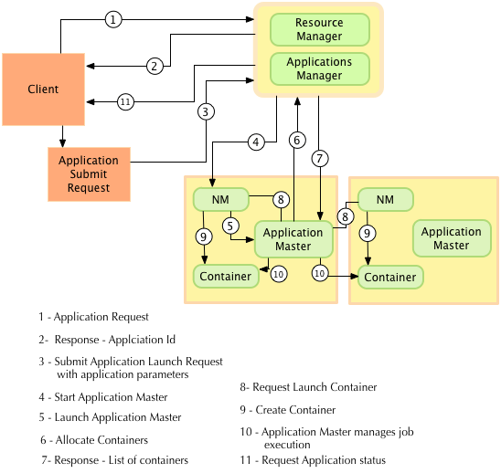 · [10] Application Master gestiona la ejecución de Job hasta que se complete el Job