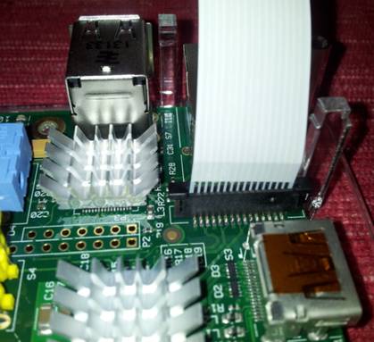 La instalación es muy sencilla. La banda se inserta en el conector plano entre la Ethernet y el HDMI. Primero es necesario levantar una pestaña tirando hacia arriba: