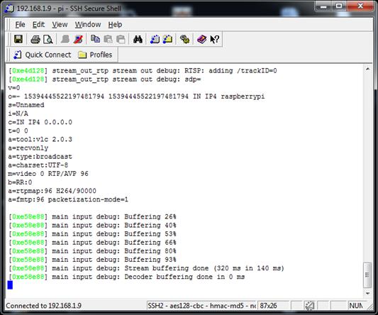 Podemos jugar con los valores -w (ancho en pixels), -h (alto en pixels), -fps (fotogramas por segundo) para conseguir mayor velocidad de transmisión.