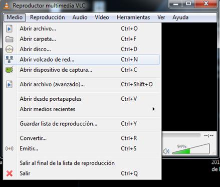 Para suscribirnos a la dirección de stream hay que abrir en el menú Abrir volcado de red…