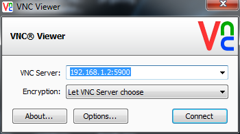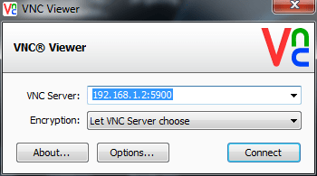 Escribimos la ip:puerto del servicio vnc (5900) del Gateway PC y pulsamos connect. La primera vez dara un aviso (por no tener el certificado) y pasara a la ventana de autenticación: