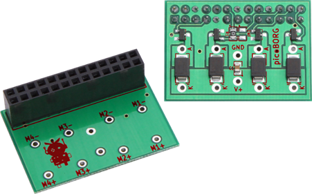 - Módulos de control de motores, a través del I2C u otros pines (pe http://www.piborg.com/picoborg)