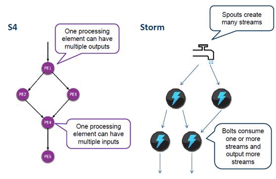 A Storm ya le hemos dedicado varios posts en el Blog, pero a S4 nos lo despachamos con un escueto “Storm garantiza que cada mensaje se ha procesado por completo, S4 no lo garantiza“ en este post: https://unpocodejava.wordpress.com/2012/07/26/cuando-hadoop-no-es-suficientemente-rapido/