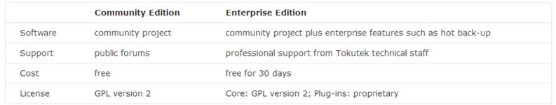 TokuMX ofrece 2 versiones, la Community y la Enterprise (coste) con estas diferencias: