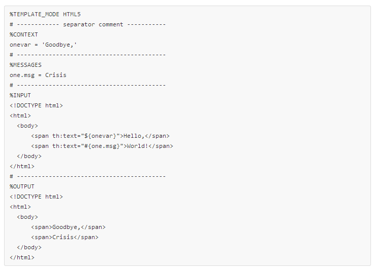 Un ejemplo bastante representativo de lo que permite es https://github.com/thymeleaf/thymeleaf-testing#test-file-formateste test: