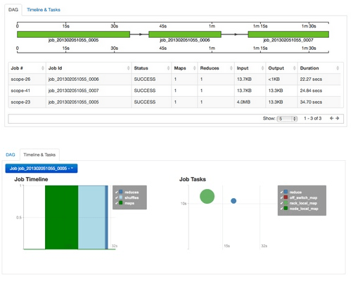 · Ambari también incluye herramientas de diagnóstico de trabajo para visualizar las interdependencias de los Jobs y ver cronogramas de tareas como una forma de solucionar los problemas de ejecución