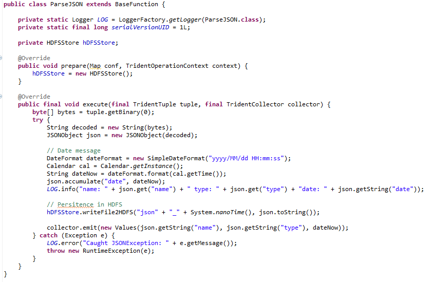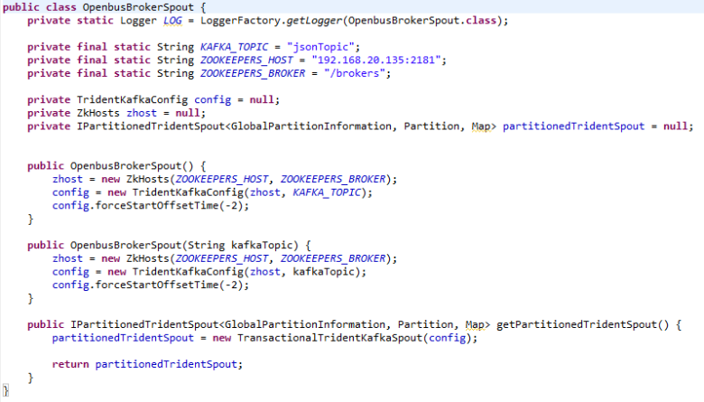 Ø La clase que se encarga de la lectura del mensaje del Broker Kafka desde Storm es esta: