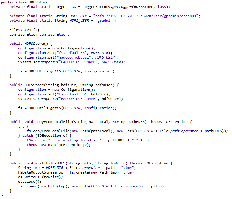 Ø La persistencia en HDFS se realiza desde esta clase: