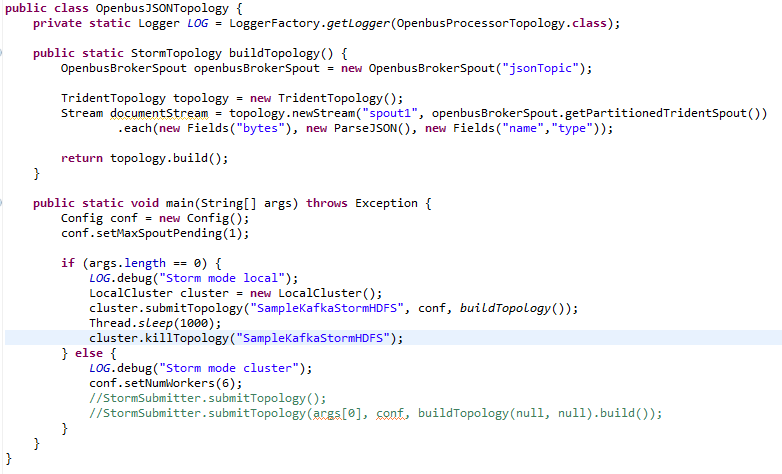 mvn exec:java -Dexec.mainClass=»openbus.processor.topology.OpenbusJSONTopology»