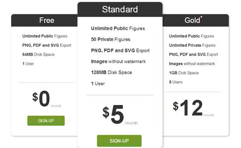 Es necesario disponer de una cuenta (gratuita) para poder acceder a las características que ofrece. Una vez elegido el tipo de diagrama, se utilizará una interfaz html 5 para modificarlo.