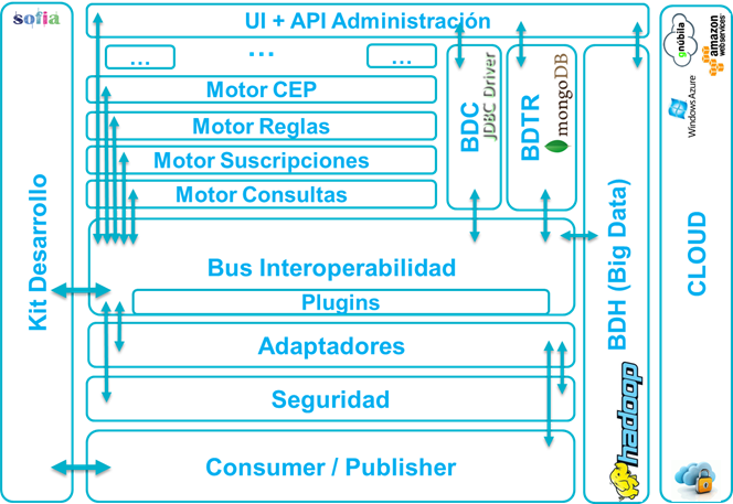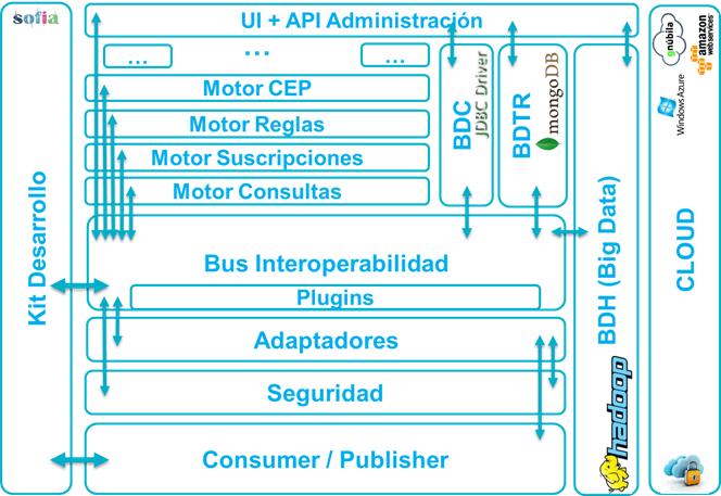 - Entre los datos configurables se encuentran Ontologías, Plantillas de Ontologías, Reglas CEP, Reglas Script, Consultas Predefinidas, KPs, Inventario de Dispositivos,…