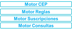 • Motor CEP: Permite definir Reglas CEP que aplican a los datos que llegan y que desencadenan notificaciones (pj media de medidas de Temperatura mayor de 50, o no se ha recibido cierto dato en 1 día)