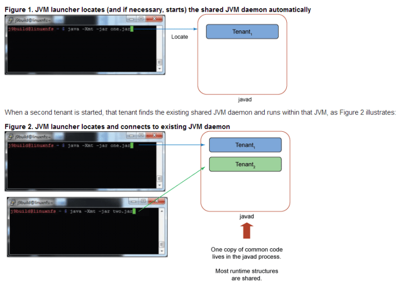 Si relacionamos el concepto multitenancy con el de JVM llegamos a las JVMs multitenancy.