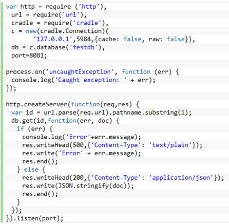 La prueba consiste en leer un dato JSON de CouchDB y devolverlo, en el caso de Node.js