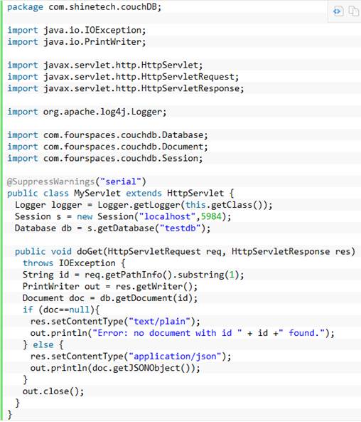 “The Java servlet was run on an Apache Tomcat version 7.0.21, default configuration running on Java 1.6. The database driver was CouchDB4J version 0.30. The driver has no caching options available, so no configuration was done.”