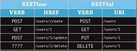 - Una de las ventajas de RESTful es que no es necesaria una convención de métodos para poder invocar el API y que la estructura de las URLS es clara y limpia.