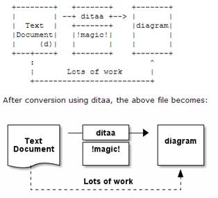 ditaaes una librería Java de línea de acomandos que es capaz de convertir diagramas hechos en Ascii (lo que se denomina Ascii Art) en gráficos Bitmap (en parte hace el proceso inverso a JavE).