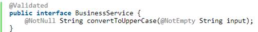 · En Spring 3.1 y con la versión 4.2 de Hibernate Validator permite usar la anotación @Validated que indica que sirve para indicar que los métodos deben incluir validación de métodos