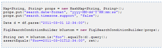 Para trabajar con queries FIQL CXF ofrece la clase SearchCondition que permite filtrar una colección de datos (por ejemplo un SELECT *) que cumplan los criterios: