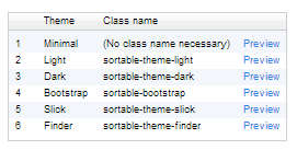 Sortable es una librería open-source Javascript +CSS (6 temas) que permite añadir la funcionalidad de ordenado a cualquier tabla.