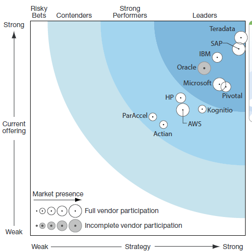 En este informe público de Forrester podéis encontrar su informe comparativo de EDW actualizado a último cuatrimestre de 2013.