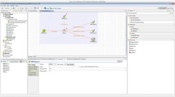 Talend Open Studio for Big Data ofrece un IDE sobre Eclipse que nos permite trabajar con Hadoop y todo su ecosistema (además de con bases de datos NoSQL como Cassandra y MongoDB)