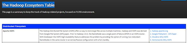 Aunque incompleto (alguno falta) y con varios TODOS, de lectura obligatoria para todos los que os movéis en el mundo Hadoop (aunque sólo sea para abrumar hablando de GlusterFS, Tachyon, JAQL, Stratosphere, Datafu, RethinkDB, Tajo, Suro, HIHO, Curator, Sentry… :D)