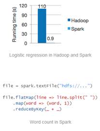 El equipo de Spark promete ser 100 veces más rápido que un trabajo MapReduce Hadoop en memoria o 10x veces más rápido que un trabajo MapReduce en disco.
