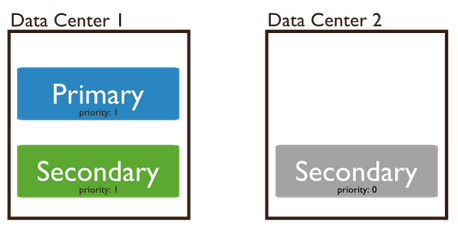 Donde el nodo secundario del Data Center 2 suele montarse con prioridad 0, para evitar que se convierta en maestro.