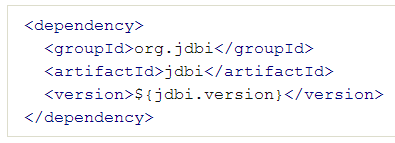 Una de sus ventajas es que no tiene dependencias en ejecución y solo necesita su JAR para funcionar: http://search.maven.org/remotecontent?filepath=org/jdbi/jdbi/2.53/jdbi-2.53.jar