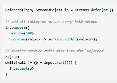 · Nuevos métodos Stream.window y Stream.timeout en su Stream API, que nos permiten recoger valores durante un periodo de tiempo y pasárselos al processor chain: