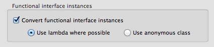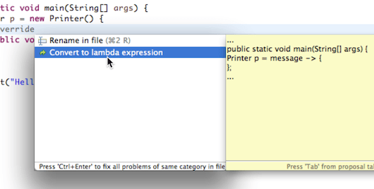 Entre otras cosas se permite refactorizar clases anónimas en expresiones Lamda: