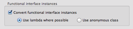 Entre otras cosas se permite refactorizar clases anónimas en expresiones Lamda: