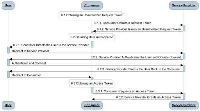 El flujo importante (no está la parte en la que el Consumer obtiene su consumer key y consumer secret):