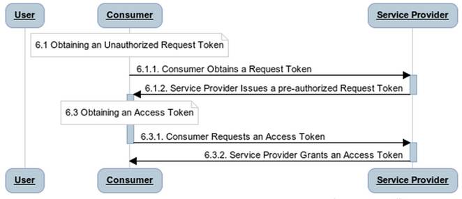 La interacción 6.1 es algo diferente, en lugar de que el Service Provider devuelva al Consumer un unauthorized request token el token es pre-authorized. El Consumer puede inmediatamente intercambiarlo por un Access token.