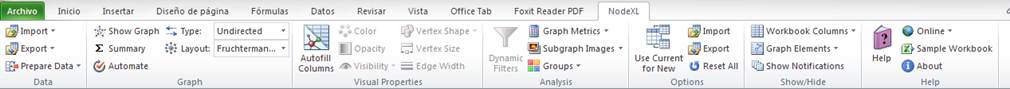 NodeXL es una plantilla gratuita y open-source para Microsoft® Excel 2007, 2010 y 2013 que nos ayuda a explorar network graphs.