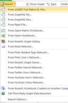La primera vez que use NodeXL sólo me permitirá esta primera opción:
