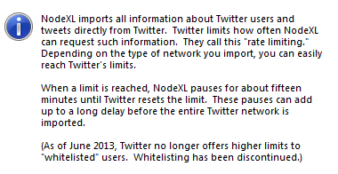 Cuando hagáis una búsqueda sed cuidadosos con el número de resultados porque como bien dice NodeXL: