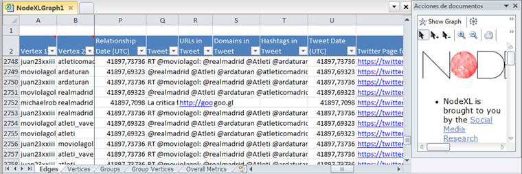 Hasta aquí este primer post sobre NodeXL, en post posteriores seguiremos descubriendo herramientas para el análisis